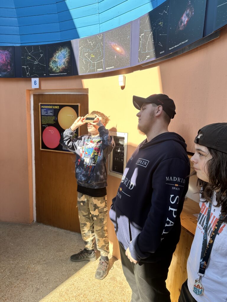 V pondělí 23.3.2026 jsme navštívili Hvězdárnu Vsetín. Původně jsme šli na plánovaný lektorský program o astronautech, ale díky mimořádně příznivému počasí se naše plány trochu změnily a my nakonec pozorovali Slunce.