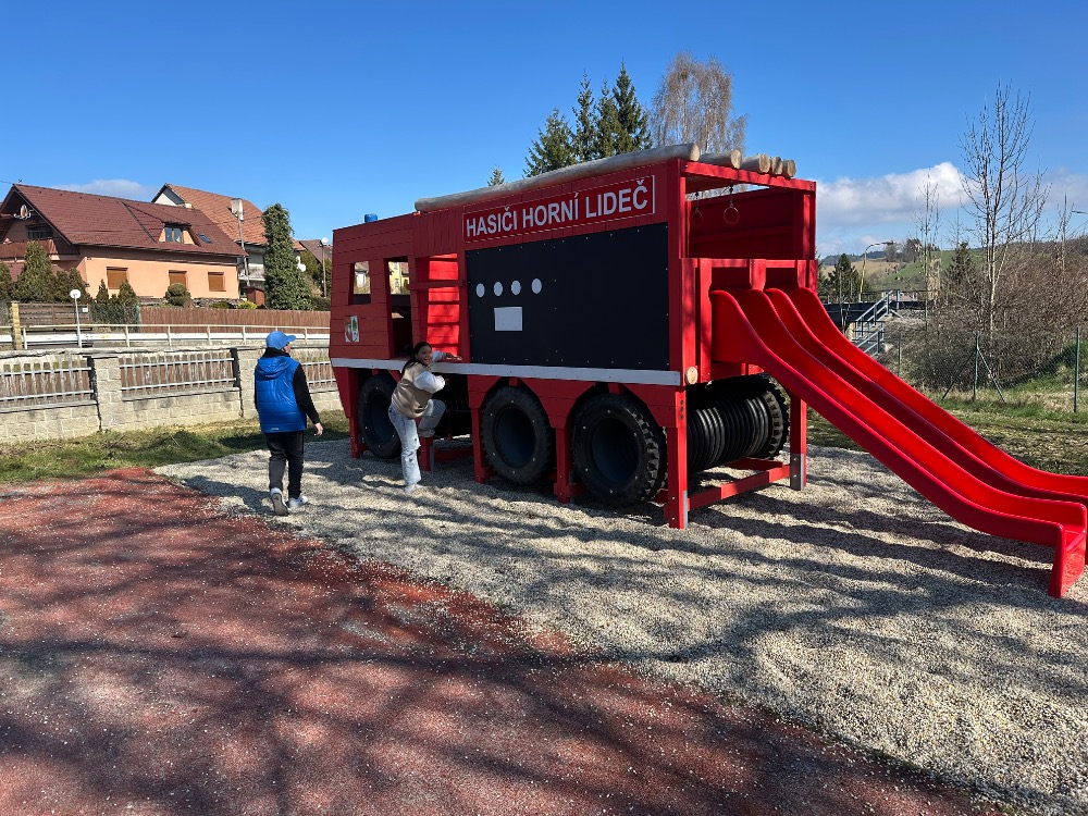 Objevili jsme i nový herní prvek, který je hned vedle zbrojnice, a užili si tak chladné dopoledne venku. Počasí nás ale vůbec neodradilo, protože jsme byli připraveni a odnesli si plno úžasných zážitků. Moc děkujeme místním dobrovolným hasičům za jejich ochotu a těšíme se na další milé setkání s nimi.